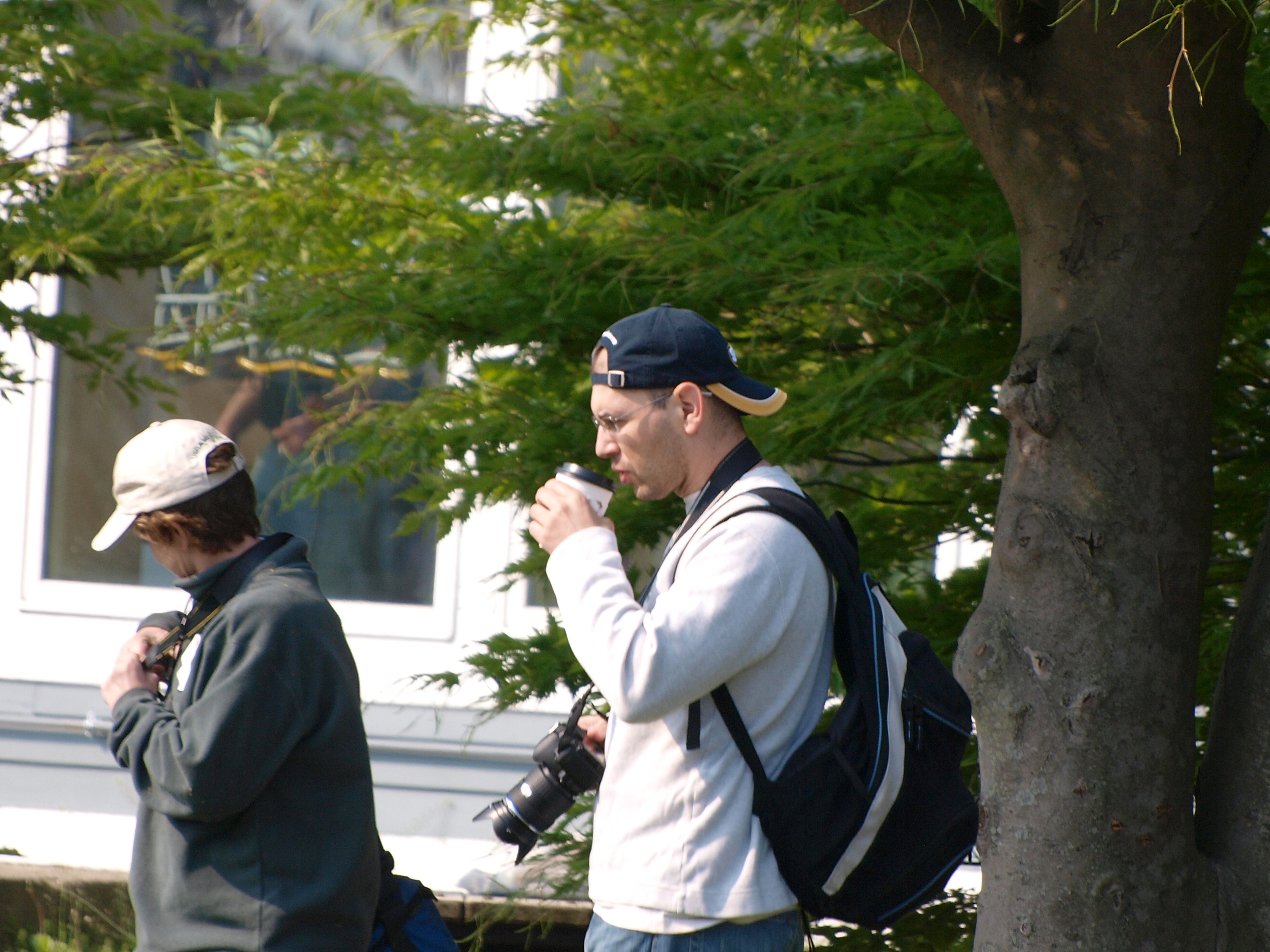 Picture #49: Dueling cameras Small: 800x623, 124,406 bytes (122K), (html file) Large: 3200x2400, 5,598,637 bytes (5.3M), (html file) Copyright, Michael Meissner 2009, All rights reserved Olympus E-3 camera with Olympus 70-300mm f/4.0-5.6 lens and Olympus EC-14 (1.4x) f/8.0, ISO 100, 1/400 sec, 224.0mm, auto mode, natural color, matrix metering, IS1 (All Direction Shake IS) 35mm equivalent focal length 449.0mm, EC-14 Programs used: gimp Taken by Michael Meissner on May 16, 2009 09:09:18 Last modified on May 23, 2009 at 23:41 |