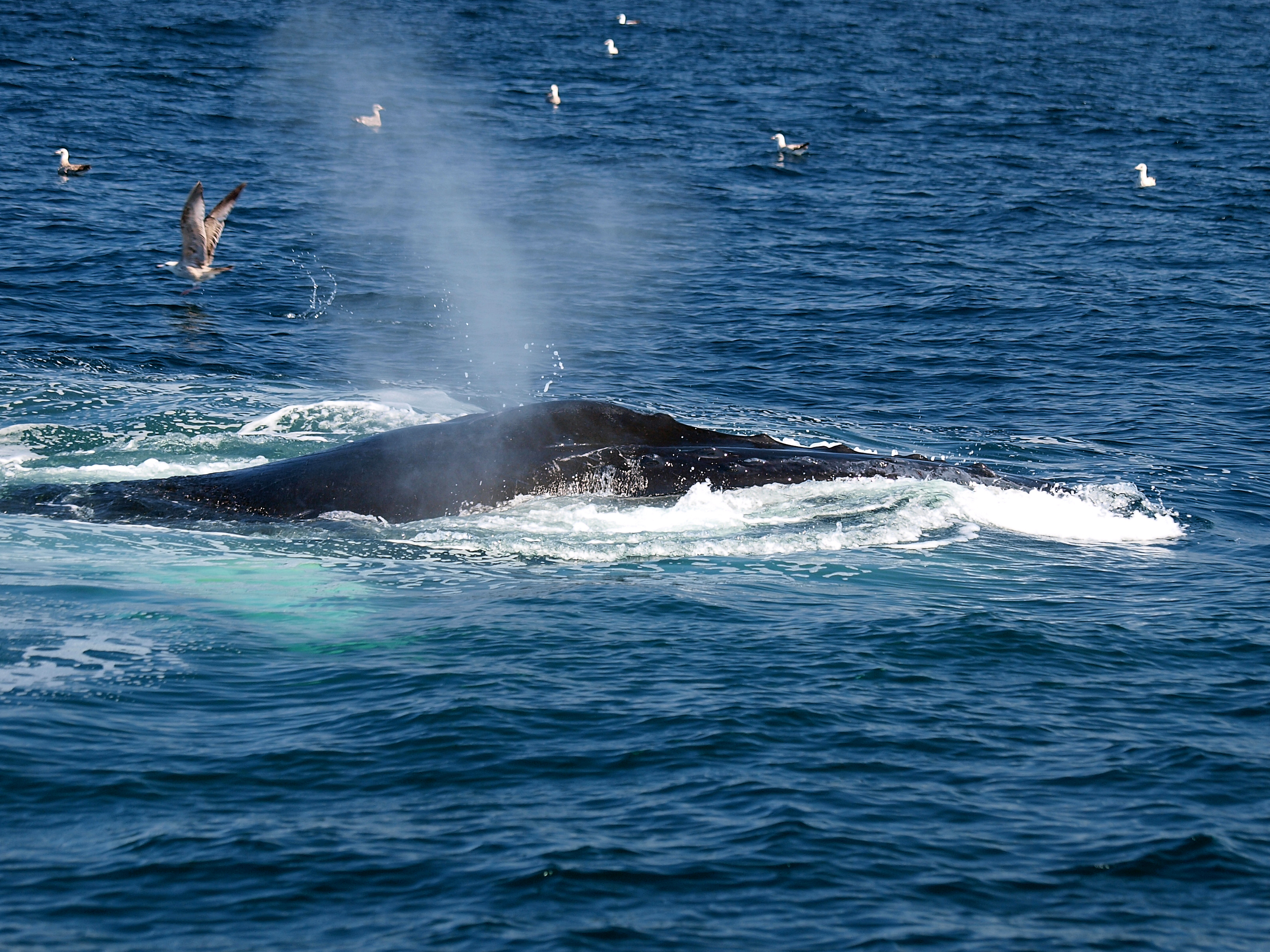 Picture #22: Whale feeding #22 Small: 800x623, 93,176 bytes (91K), (html file) Large: 800x600, 534,001 bytes (522K), (html file) Copyright, Michael Meissner 2009, All rights reserved Olympus E-1 camera with Olympus 14-54mm f/2.8-3.5 lens f/7.1, ISO 100, 1/400 sec, 38.0mm, auto mode, SHQ, matrix metering, +2 contrast, +2 sharpening 35mm equivalent focal length 76.0mm Programs used: gimp Taken by Michael Meissner on May 25, 2009 15:23:58 Last modified on July 06, 2009 at 08:01 |