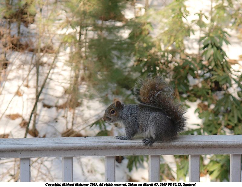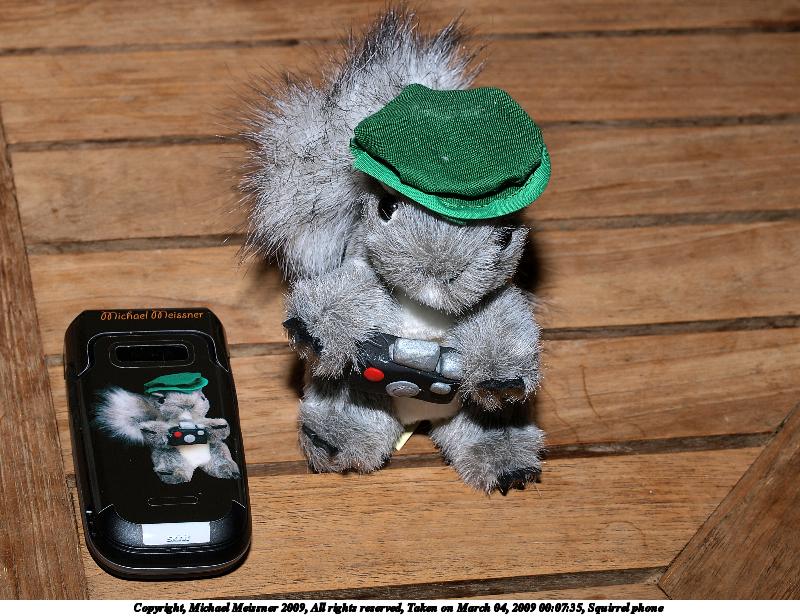 Picture #4: Squirrel phone #4 800x616, 132,200 bytes (130K), (html file) Copyright, Michael Meissner 2009, All rights reserved Olympus E-3 camera with Olympus 50mm f/2.0 lens f/8.0, ISO 100, FL-50 flash, 1/100 sec, 50.0mm, aperture priority, natural color, auto gradation, matrix metering, IS1 (All Direction Shake IS) 35mm equivalent focal length 100.0mm Extra equipment used: FL-50 flash Programs used: gimp Taken by Michael Meissner on March 04, 2009 00:07:35 Last modified on March 04, 2009 at 00:28 |