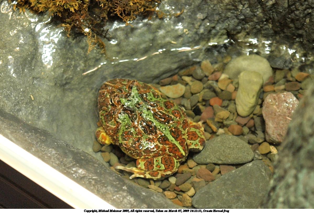 Picture #2: Ornate Horned frog 1200x816, 175,761 bytes (172K), (html file) Copyright, Michael Meissner 2009, All rights reserved Olympus E-3 camera with Olympus 14-54mm f/2.8-3.5 lens f/3.4, ISO 1250, 1/50 sec, 47.0mm, auto mode, natural color, auto gradation, matrix metering, IS1 (All Direction Shake IS) 35mm equivalent focal length 94.0mm Extra equipment used: shot through glass Programs used: gimp Taken by Michael Meissner on March 07, 2009 14:21:33 Last modified on March 08, 2009 at 09:37 |