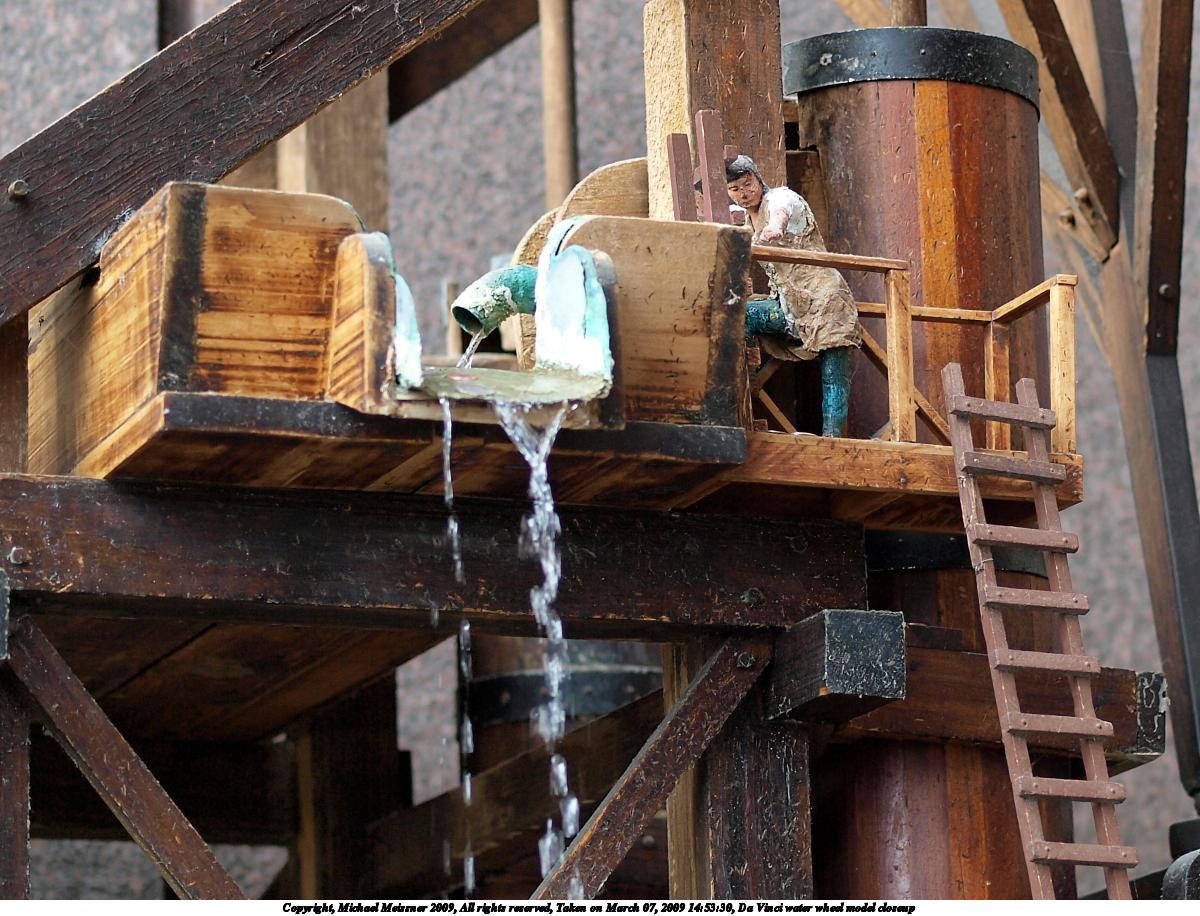 Picture #2: Da Vinci water wheel model closeup 1200x916, 212,676 bytes (208K), (html file) Copyright, Michael Meissner 2009, All rights reserved Olympus E-3 camera with Olympus 50mm f/2.0 lens f/2.0, ISO 200, 1/100 sec, 50.0mm, auto mode, natural color, auto gradation, matrix metering, IS1 (All Direction Shake IS) 35mm equivalent focal length 100.0mm Programs used: gimp Taken by Michael Meissner on March 07, 2009 14:53:30 Last modified on March 08, 2009 at 19:51 |