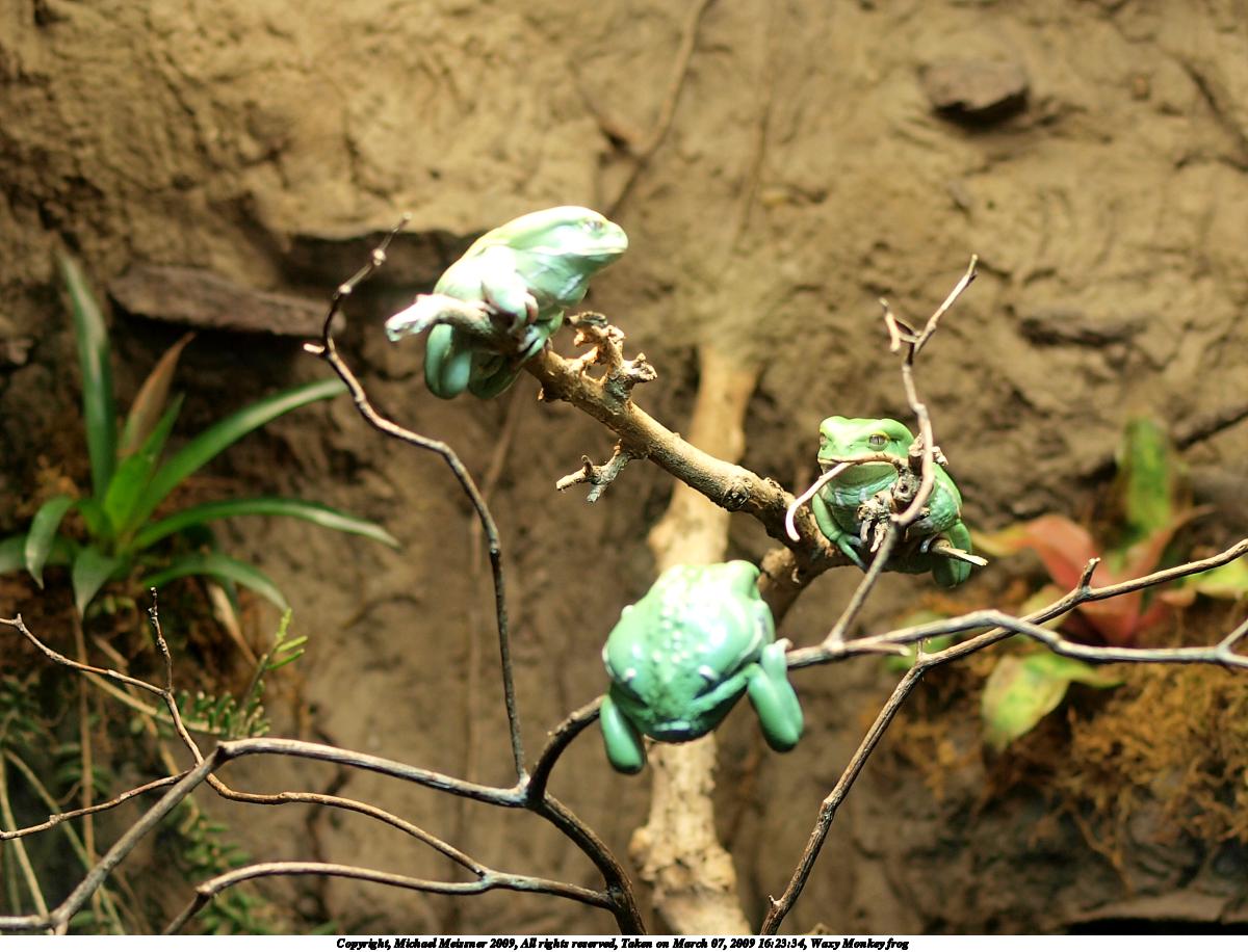 Picture #15: Waxy Monkey frog #2 1200x916, 129,340 bytes (127K), (html file) Copyright, Michael Meissner 2009, All rights reserved Olympus E-3 camera with Olympus 50mm f/2.0 lens f/2.0, ISO 125, 1/100 sec, 50.0mm, auto mode, natural color, matrix metering, IS1 (All Direction Shake IS) 35mm equivalent focal length 100.0mm Extra equipment used: shot through glass Programs used: gimp Taken by Michael Meissner on March 07, 2009 16:31:53 Last modified on March 08, 2009 at 15:40 |