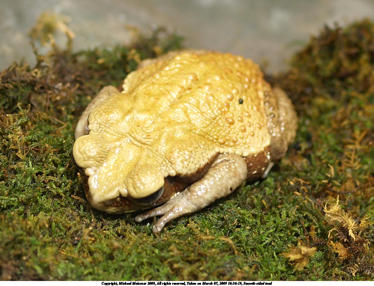 Picture #19: Smooth-sided toad #2 1200x916, 208,782 bytes (204K), (html file) Copyright, Michael Meissner 2009, All rights reserved Olympus E-3 camera with Olympus 50mm f/2.0 lens f/2.0, ISO 640, 1/100 sec, 50.0mm, auto mode, natural color, matrix metering, IS1 (All Direction Shake IS) 35mm equivalent focal length 100.0mm Extra equipment used: shot through glass Programs used: gimp Taken by Michael Meissner on March 07, 2009 16:36:19 Last modified on March 08, 2009 at 15:50 |
