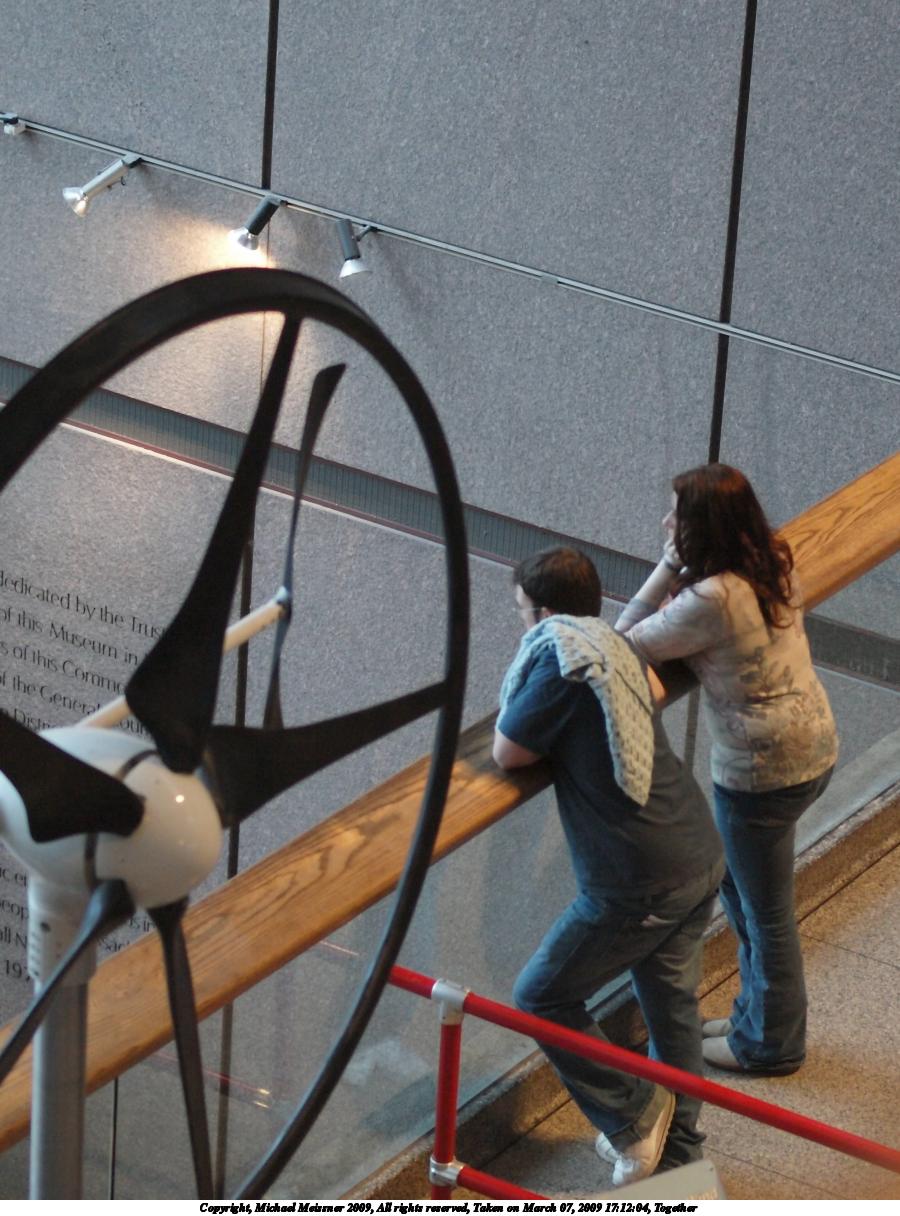 Picture #10: Together 900x1216, 172,192 bytes (169K), (html file) Copyright, Michael Meissner 2009, All rights reserved Olympus E-3 camera with Olympus 50mm f/2.0 lens f/2.0, ISO 1250, 1/100 sec, 50.0mm, auto mode, natural color, matrix metering, IS1 (All Direction Shake IS) 35mm equivalent focal length 100.0mm Programs used: gimp Taken by Michael Meissner on March 07, 2009 17:12:04 Last modified on March 11, 2009 at 22:23 |