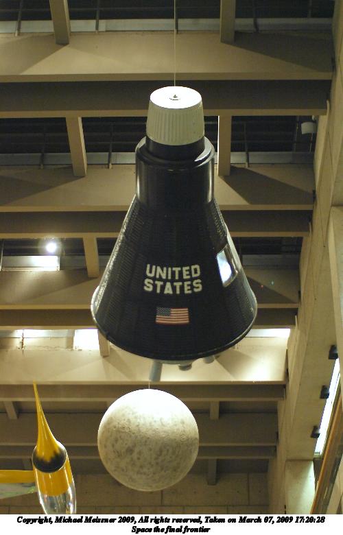 Picture #16: Space the final frontier 500x780, 76,862 bytes (76K), (html file) Copyright, Michael Meissner 2009, All rights reserved Olympus E-3 camera with Sigma 30mm f/1.4 lens f/1.4, ISO 1250, 1/50 sec, 30.0mm, auto mode, natural color, matrix metering, IS1 (All Direction Shake IS) 35mm equivalent focal length 60.0mm Programs used: gimp, rotate Taken by Michael Meissner on March 07, 2009 17:20:28 Last modified on March 13, 2009 at 07:57 |
