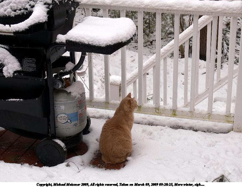 Picture #3: More winter, sigh.... 800x616, 109,359 bytes (107K), (html file) Copyright, Michael Meissner 2009, All rights reserved Olympus E-3 camera with Olympus 14-54mm f/2.8-3.5 lens f/5.6, ISO 125, 1/60 sec, 32.0mm, aperture priority, natural color, matrix metering, IS1 (All Direction Shake IS) 35mm equivalent focal length 64.0mm Programs used: gimp Taken by Michael Meissner on March 09, 2009 09:28:25 Last modified on March 09, 2009 at 22:38 |