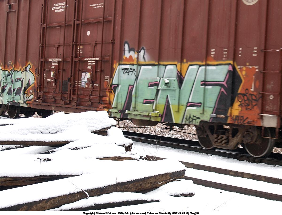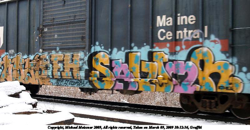 Picture #2: Graffiti #2 1200x916, 174,946 bytes (171K), (html file) Copyright, Michael Meissner 2009, All rights reserved Olympus E-3 camera with Olympus 14-54mm f/2.8-3.5 lens f/3.5, ISO 100, 1/80 sec, 25.0mm, auto mode, natural color, matrix metering, IS1 (All Direction Shake IS) 35mm equivalent focal length 50.0mm Programs used: gimp Taken by Michael Meissner on March 09, 2009 10:12:20 Last modified on March 13, 2009 at 22:13 |