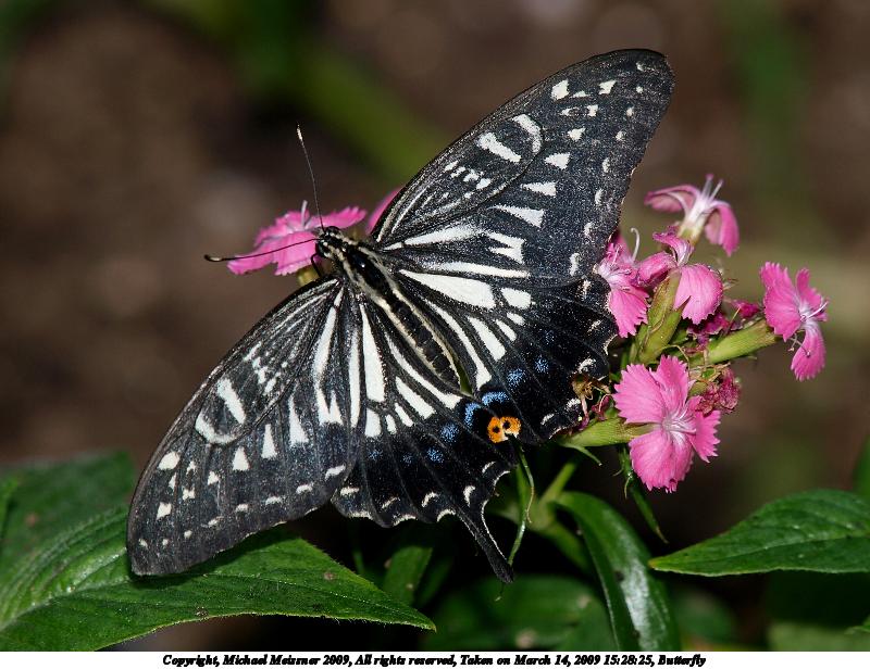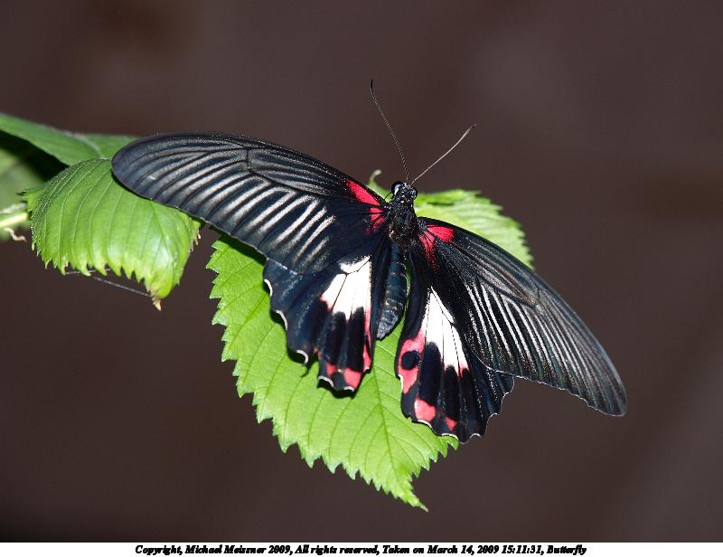 Picture #15: Butterfly #8 800x616, 99,047 bytes (97K), (html file) Copyright, Michael Meissner 2009, All rights reserved Olympus E-3 camera with Olympus 50-200mm f/2.8-3.5 lens f/5.6, ISO 100, FL-50 flash, 1/250 sec, 200.0mm, aperture priority, natural color, matrix metering, IS1 (All Direction Shake IS) 35mm equivalent focal length 401.0mm Extra equipment used: FL-50 flash Programs used: gimp Taken by Michael Meissner on March 14, 2009 15:26:07 Last modified on March 15, 2009 at 21:17 |