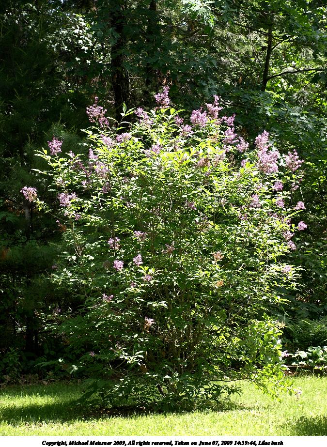 Picture #73: Lilac bush #3 600x823, 124,694 bytes (122K), (html file) Copyright, Michael Meissner 2009, All rights reserved Olympus E-510 camera with Olympus 40-150mm f/4.0-5.6 lens f/6.3, ISO 200, 1/250 sec, 150.0mm, auto mode, natural color, SHQ, matrix metering, -1 sharpening, IS1 (All Direction Shake IS), noise reduction, noise filter low 35mm equivalent focal length 301.0mm Programs used: gimp Taken by Michael Meissner on June 07, 2009 14:40:38 Last modified on June 16, 2009 at 09:02 |