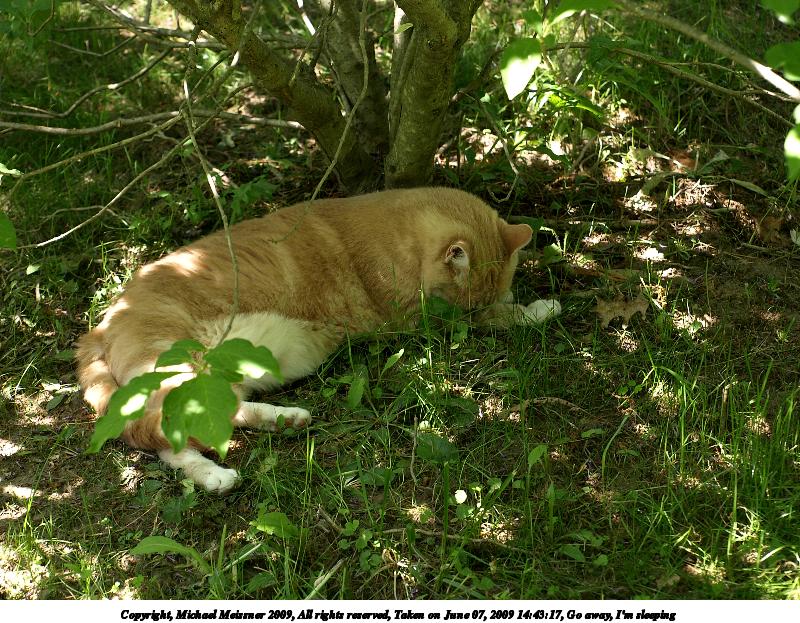 Picture #64: Go away, I'm sleeping 800x623, 180,518 bytes (177K), (html file) Copyright, Michael Meissner 2009, All rights reserved Olympus E-510 camera with Olympus 40-150mm f/4.0-5.6 lens f/4.5, ISO 200, 1/125 sec, 55.0mm, auto mode, natural color, SHQ, matrix metering, -1 sharpening, IS1 (All Direction Shake IS), noise reduction, noise filter low 35mm equivalent focal length 110.0mm Programs used: gimp Taken by Michael Meissner on June 07, 2009 14:43:17 Last modified on June 16, 2009 at 09:22 |