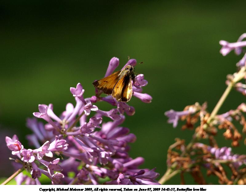 Picture #63: Butterflies love lilac #4 800x623, 80,691 bytes (79K), (html file) Copyright, Michael Meissner 2009, All rights reserved Olympus E-510 camera with Olympus 40-150mm f/4.0-5.6 lens f/5.6, ISO 200, 1/200 sec, 142.0mm, auto mode, natural color, SHQ, matrix metering, -1 sharpening, IS1 (All Direction Shake IS), noise reduction, noise filter low 35mm equivalent focal length 284.0mm Programs used: gimp Taken by Michael Meissner on June 07, 2009 14:43:37 Last modified on June 16, 2009 at 09:24 |