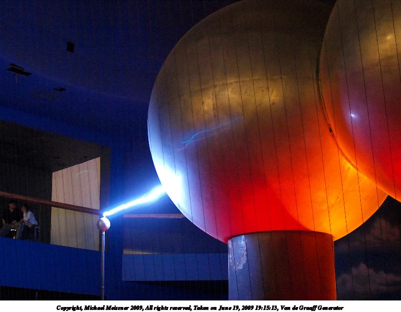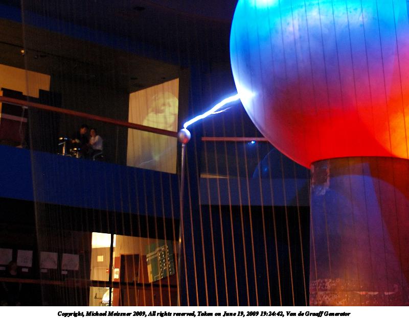 Picture #34: Van de Graaff Generator #2 800x623, 82,830 bytes (81K), (html file) Copyright, Michael Meissner 2009, All rights reserved Olympus E-3 camera with Sigma 30mm f/1.4 lens f/2.0, ISO 1250, 1/4 sec, 30.0mm, aperture priority, natural color, matrix metering, IS1 (All Direction Shake IS), noise filter low 35mm equivalent focal length 60.0mm Programs used: NoiseNinja, gimp Taken by Michael Meissner on June 19, 2009 19:24:42 Last modified on June 22, 2009 at 08:14 |