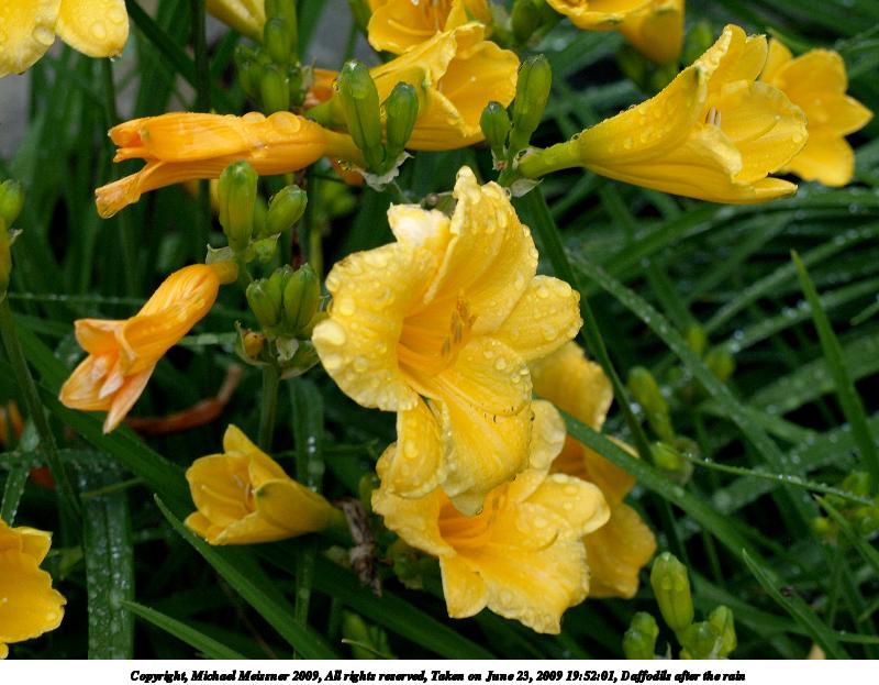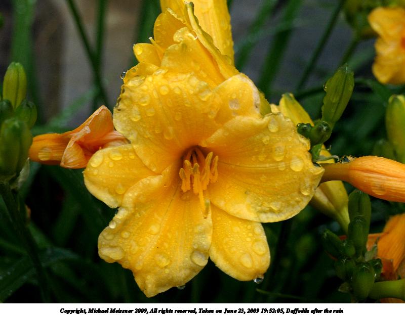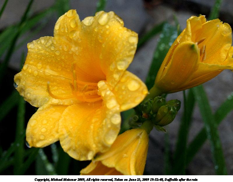 Picture #19: Daffodils after the rain #4 800x623, 86,077 bytes (85K), (html file) Copyright, Michael Meissner 2009, All rights reserved Olympus E-510 camera with Olympus 14-42mm f/3.5-5.6 lens f/5.6, ISO 400, 1/40 sec, 42.0mm, auto mode, natural color, SHQ, matrix metering, -1 sharpening, IS1 (All Direction Shake IS), noise filter low 35mm equivalent focal length 84.0mm Programs used: gimp Taken by Michael Meissner on June 23, 2009 19:52:48 Last modified on June 24, 2009 at 09:22 |