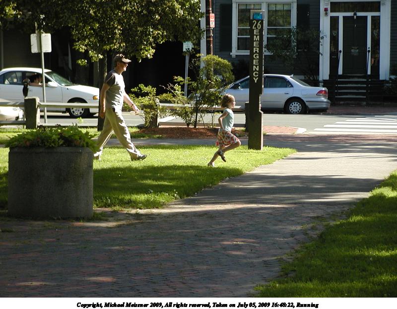 Picture #50: Running 800x623, 101,692 bytes (100K), (html file) Copyright, Michael Meissner 2009, All rights reserved Olympus C-2100UZ camera f/2.8, ISO 100, 1/650 sec, 27.3mm, auto mode, SHQ, cloudy, matrix metering 35mm equivalent focal length 151.0mm Taken by Michael Meissner on July 05, 2009 16:48:22 Last modified on July 06, 2009 at 08:12 |