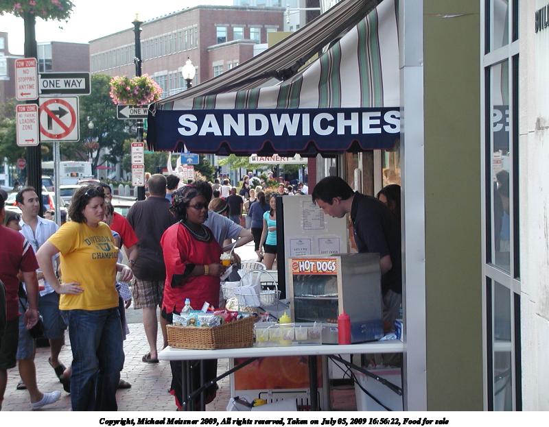Picture #46: Food for sale 800x623, 98,823 bytes (97K), (html file) Copyright, Michael Meissner 2009, All rights reserved Olympus C-2100UZ camera f/2.8, ISO 100, 1/250 sec, 17.3mm, auto mode, SHQ, cloudy, matrix metering 35mm equivalent focal length 96.0mm Taken by Michael Meissner on July 05, 2009 16:56:22 Last modified on July 06, 2009 at 08:15 Shutter speed of 1/125 or 1/250 may indicate use of flash |