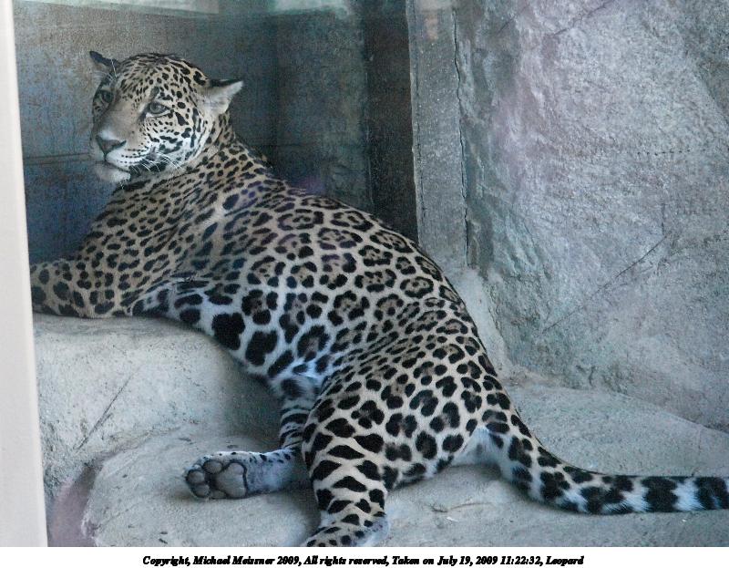 Picture #20: Leopard #3 800x623, 103,410 bytes (101K), (html file) Copyright, Michael Meissner 2009, All rights reserved Olympus E-3 camera with Olympus 14-54mm f/2.8-3.5 lens f/3.2, ISO 1000, 1/60 sec, 28.0mm, auto mode, natural color, SHQ, matrix metering, IS1 (All Direction Shake IS), noise filter low 35mm equivalent focal length 56.0mm Programs used: gimp Taken by Michael Meissner on July 19, 2009 11:23:02 Last modified on September 01, 2009 at 08:34 |