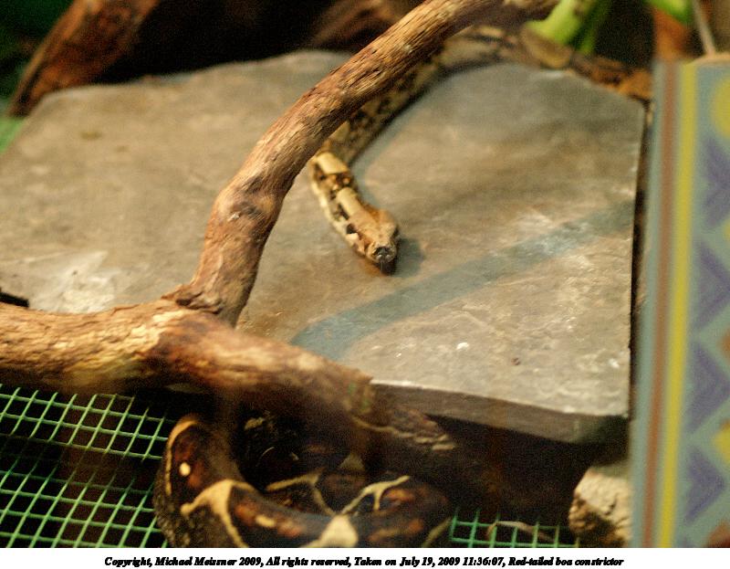 Picture #12: Red-tailed boa constrictor #2 800x623, 99,524 bytes (98K), (html file) Copyright, Michael Meissner 2009, All rights reserved Olympus E-1 camera with Olympus 50mm f/2.0 lens f/2.0, ISO 800, 1/30 sec, 50.0mm, auto mode, SHQ, center weight metering, +2 contrast, +2 sharpening 35mm equivalent focal length 100.0mm Programs used: gimp Taken by Michael Meissner on July 19, 2009 11:36:45 Last modified on September 12, 2009 at 11:35 |