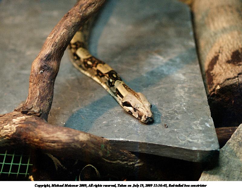 Picture #13: Red-tailed boa constrictor 800x623, 98,977 bytes (97K), (html file) Copyright, Michael Meissner 2009, All rights reserved Olympus E-1 camera with Olympus 50mm f/2.0 lens f/2.0, ISO 800, 1/30 sec, 50.0mm, auto mode, SHQ, center weight metering, +2 contrast, +2 sharpening 35mm equivalent focal length 100.0mm Programs used: gimp Taken by Michael Meissner on July 19, 2009 11:36:07 Last modified on September 12, 2009 at 11:33 |
