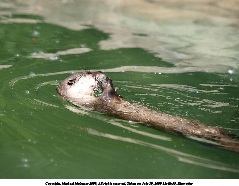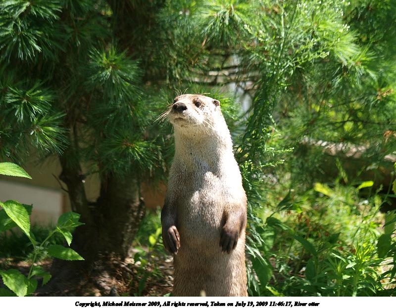 Picture #8: River otter 800x623, 122,020 bytes (120K), (html file) Copyright, Michael Meissner 2009, All rights reserved Olympus E-3 camera with Olympus 50-200mm f/2.8-3.5 lens f/2.8, ISO 160, 1/160 sec, 76.0mm, auto mode, natural color, SHQ, matrix metering, IS1 (All Direction Shake IS), noise filter low 35mm equivalent focal length 152.0mm Programs used: gimp Taken by Michael Meissner on July 19, 2009 11:46:17 Last modified on September 12, 2009 at 11:46 |