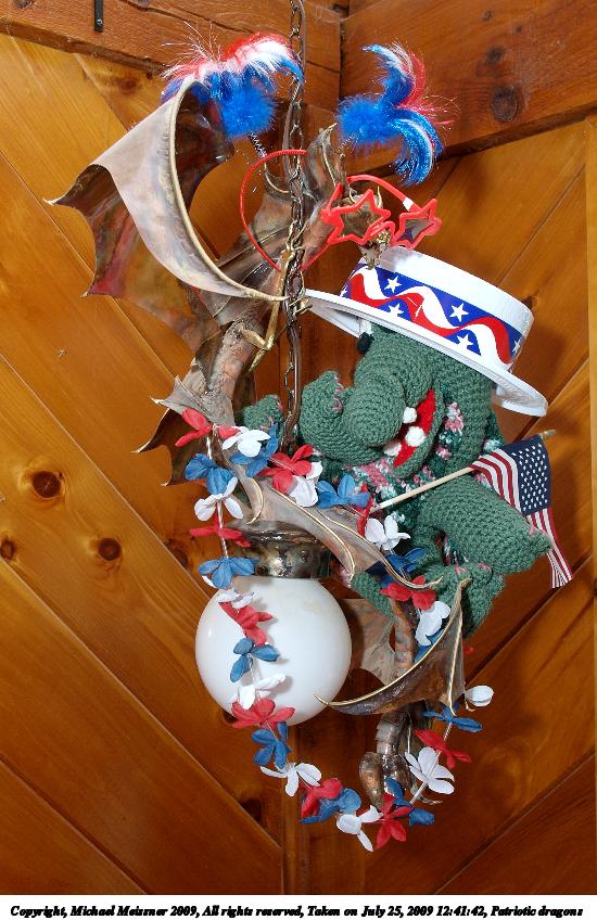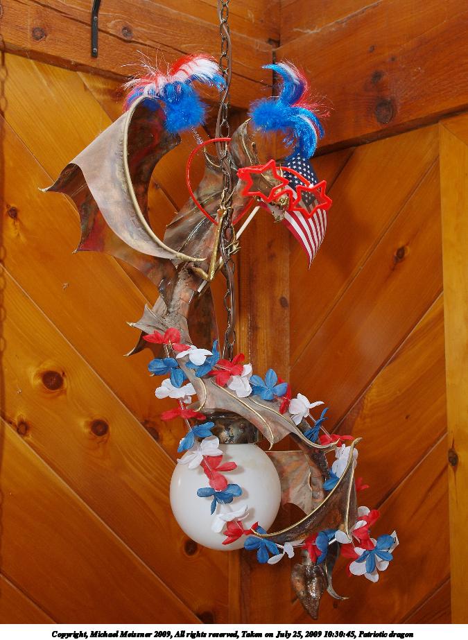 Picture #35: Patriotic dragon #2 675x923, 116,383 bytes (114K), (html file) Copyright, Michael Meissner 2009, All rights reserved Olympus E-3 camera with Olympus 14-54mm f/2.8-3.5 lens f/5.6, ISO 200, FL-50 flash, 1/60 sec, 20.0mm, aperture priority, vivid color, SHQ, matrix metering, IS1 (All Direction Shake IS), noise filter low 35mm equivalent focal length 40.0mm Extra equipment used: FL-50 flash, Flip-it Programs used: gimp Taken by Michael Meissner on July 25, 2009 10:30:45 Last modified on July 25, 2009 at 13:03 |