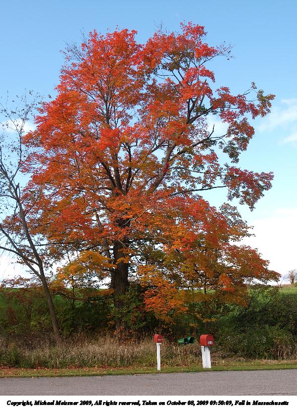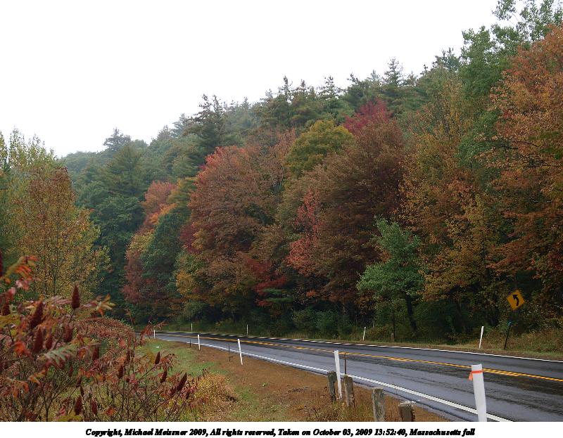 Picture #50: Fall in Massachusetts #2 800x423, 93,374 bytes (92K), (html file) Copyright, Michael Meissner 2009, All rights reserved Olympus E-3 camera with Olympus 14-54mm f/2.8-3.5 lens f/6.3, ISO 100, 1/320 sec, 20.0mm, auto mode, natural color, SHQ, matrix metering, IS1 (All Direction Shake IS), noise filter low 35mm equivalent focal length 40.0mm Programs used: gimp Taken by Michael Meissner on October 08, 2009 09:50:34 Last modified on October 11, 2009 at 08:27 |