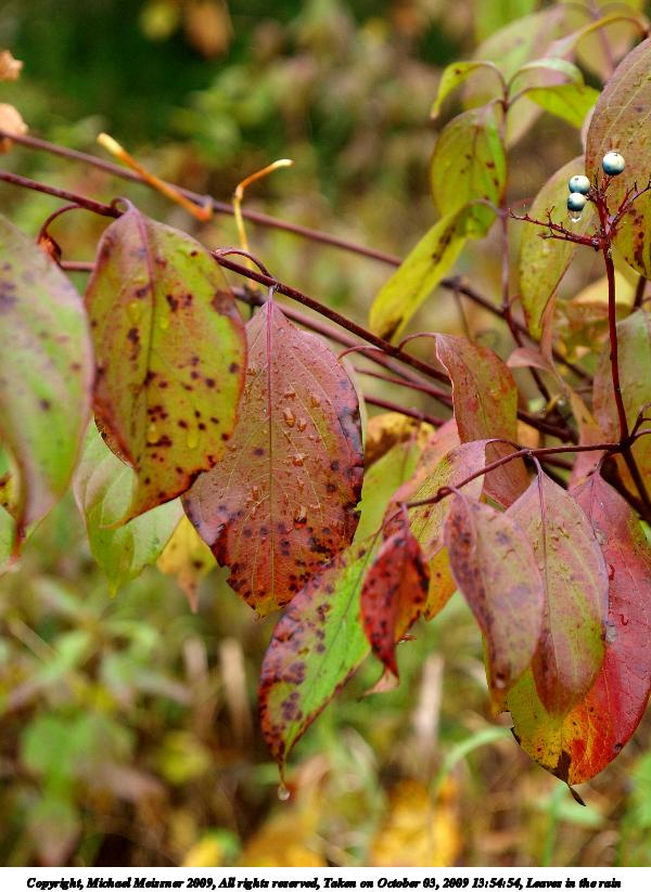 Picture #8: Leaves in the rain 600x823, 93,351 bytes (92K), (html file) Copyright, Michael Meissner 2009, All rights reserved Olympus E-3 camera with Olympus 14-54mm f/2.8-3.5 lens f/3.3, ISO 200, 1/80 sec, 41.0mm, auto mode, natural color, SHQ, matrix metering, IS1 (All Direction Shake IS), noise filter low 35mm equivalent focal length 82.0mm Programs used: gimp Taken by Michael Meissner on October 03, 2009 13:54:54 Last modified on October 06, 2009 at 08:39 |