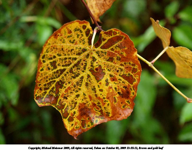 Picture #9: Brown and gold leaf 800x623, 98,661 bytes (97K), (html file) Copyright, Michael Meissner 2009, All rights reserved Olympus E-3 camera with Olympus 14-54mm f/2.8-3.5 lens f/3.5, ISO 320, 1/100 sec, 54.0mm, auto mode, natural color, SHQ, matrix metering, IS1 (All Direction Shake IS), noise filter low 35mm equivalent focal length 108.0mm Programs used: gimp Taken by Michael Meissner on October 03, 2009 13:55:12 Last modified on October 06, 2009 at 08:41 |