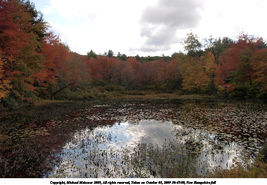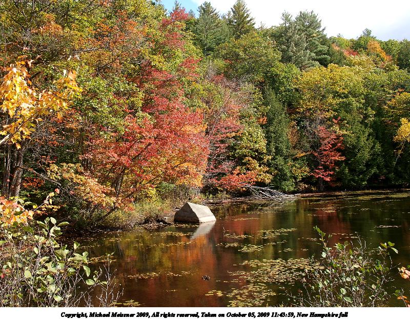 Picture #25: New Hampshire fall #2 800x623, 165,342 bytes (162K), (html file) Copyright, Michael Meissner 2009, All rights reserved Olympus E-3 camera with Olympus 14-54mm f/2.8-3.5 lens f/11.0, ISO 100, 1/80 sec, 35.0mm, aperture priority, natural color, auto gradation, SHQ, matrix metering, IS1 (All Direction Shake IS), noise filter low 35mm equivalent focal length 70.0mm Programs used: gimp Taken by Michael Meissner on October 05, 2009 09:04:07 Last modified on October 06, 2009 at 09:19 This picture is one of my favorites. |