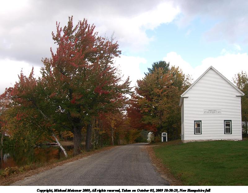Picture #24: New Hampshire fall 600x823, 139,198 bytes (136K), (html file) Copyright, Michael Meissner 2009, All rights reserved Olympus E-3 camera with Olympus 14-54mm f/2.8-3.5 lens f/11.0, ISO 100, 1/80 sec, 14.0mm, aperture priority, natural color, auto gradation, SHQ, matrix metering, IS1 (All Direction Shake IS), noise filter low 35mm equivalent focal length 28.0mm Programs used: gimp Taken by Michael Meissner on October 05, 2009 09:03:59 Last modified on October 06, 2009 at 09:17 This picture is one of my favorites. |