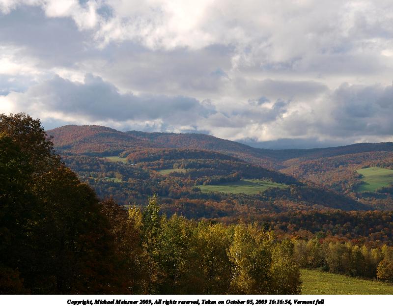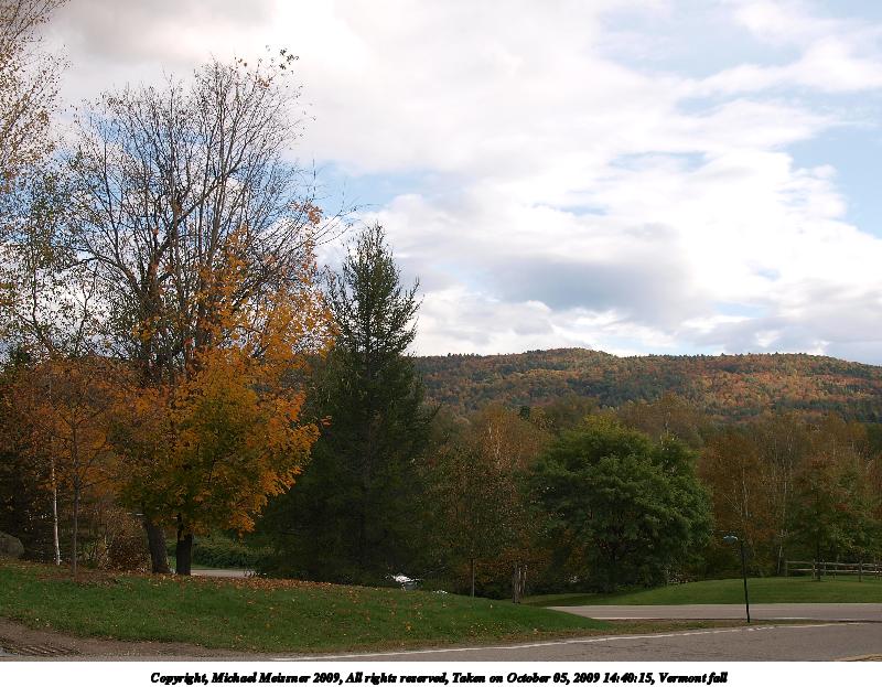Picture #45: Vermont fall #5 900x698, 112,031 bytes (110K), (html file) Copyright, Michael Meissner 2009, All rights reserved Olympus E-3 camera with Olympus 14-54mm f/2.8-3.5 lens f/5.6, ISO 100, 1/320 sec, 14.0mm, auto mode, natural color, SHQ, matrix metering, IS1 (All Direction Shake IS), noise filter low 35mm equivalent focal length 28.0mm Programs used: gimp Taken by Michael Meissner on October 05, 2009 16:16:21 Last modified on October 07, 2009 at 23:56 |