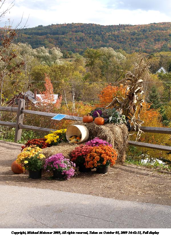 Picture #44: Fall display 600x823, 178,176 bytes (174K), (html file) Copyright, Michael Meissner 2009, All rights reserved Olympus E-3 camera with Olympus 14-54mm f/2.8-3.5 lens f/5.6, ISO 100, 1/200 sec, 29.0mm, auto mode, natural color, SHQ, matrix metering, IS1 (All Direction Shake IS), noise filter low 35mm equivalent focal length 58.0mm Programs used: gimp Taken by Michael Meissner on October 05, 2009 14:42:15 Last modified on October 07, 2009 at 23:44 |