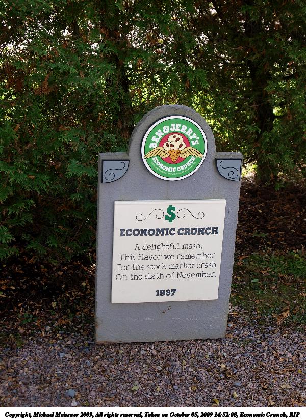Picture #6: Economic Crunch, RIP 600x823, 164,681 bytes (161K), (html file) Copyright, Michael Meissner 2009, All rights reserved Olympus E-3 camera with Olympus 14-54mm f/2.8-3.5 lens f/3.2, ISO 100, 1/80 sec, 28.0mm, auto mode, natural color, SHQ, matrix metering, IS1 (All Direction Shake IS), noise filter low 35mm equivalent focal length 56.0mm Programs used: gimp Taken by Michael Meissner on October 05, 2009 14:52:08 Last modified on October 07, 2009 at 23:51 |