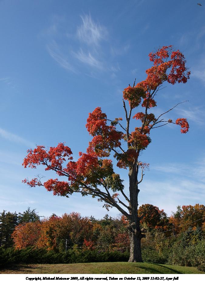 Picture #58: Ayer fall #4 675x923, 189,103 bytes (185K), (html file) Copyright, Michael Meissner 2009, All rights reserved Olympus E-3 camera with Olympus 14-54mm f/2.8-3.5 lens f/6.3, ISO 100, 1/320 sec, 14.0mm, auto mode, natural color, SHQ, center weight metering, IS1 (All Direction Shake IS), noise filter low 35mm equivalent focal length 28.0mm Programs used: gimp Taken by Michael Meissner on October 12, 2009 11:07:36 Last modified on October 13, 2009 at 08:44 This picture is one of my favorites. |
