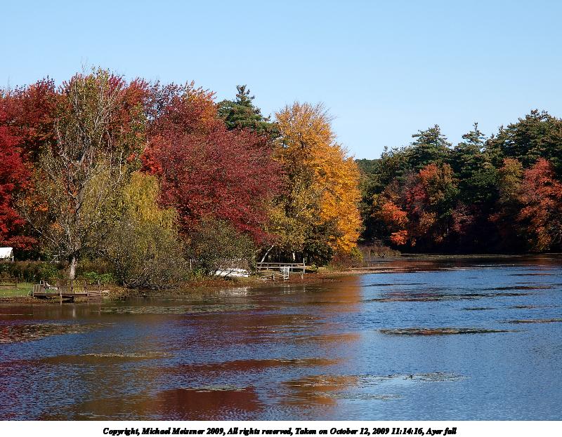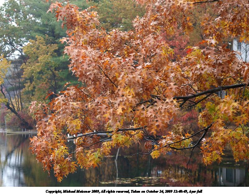 Picture #61: Ayer fall #7 800x623, 143,010 bytes (140K), (html file) Copyright, Michael Meissner 2009, All rights reserved Olympus E-3 camera with Olympus 14-54mm f/2.8-3.5 lens f/6.3, ISO 100, 1/320 sec, 52.0mm, auto mode, natural color, SHQ, center weight metering, IS1 (All Direction Shake IS), noise filter low 35mm equivalent focal length 104.0mm Programs used: gimp Taken by Michael Meissner on October 12, 2009 11:14:16 Last modified on October 13, 2009 at 08:51 This picture is one of my favorites. |