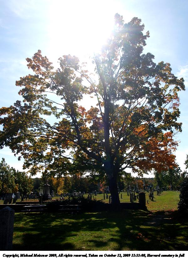 Picture #65: Harvard cemetery in fall #2 600x823, 151,798 bytes (149K), (html file) Copyright, Michael Meissner 2009, All rights reserved Olympus E-3 camera with Olympus 14-54mm f/2.8-3.5 lens f/6.3, ISO 100, 1/400 sec, 14.0mm, auto mode, natural color, SHQ, center weight metering, IS1 (All Direction Shake IS), noise filter low 35mm equivalent focal length 28.0mm Programs used: gimp Taken by Michael Meissner on October 12, 2009 11:33:08 Last modified on October 14, 2009 at 08:09 |
