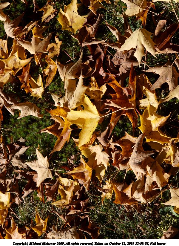 Picture #80: Fall leaves 600x823, 175,481 bytes (172K), (html file) Copyright, Michael Meissner 2009, All rights reserved Olympus E-3 camera with Olympus 14-54mm f/2.8-3.5 lens f/6.3, ISO 100, 1/400 sec, 54.0mm, auto mode, natural color, SHQ, matrix metering, IS1 (All Direction Shake IS), noise filter low 35mm equivalent focal length 108.0mm Programs used: gimp Taken by Michael Meissner on October 12, 2009 12:59:58 Last modified on October 14, 2009 at 08:37 |