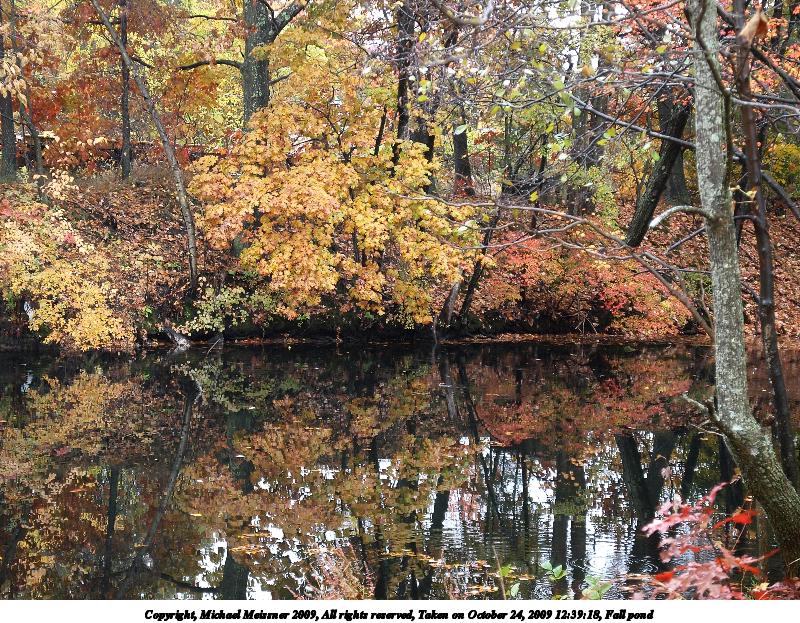 Picture #94: Fall pond 800x623, 215,780 bytes (211K), (html file) Copyright, Michael Meissner 2009, All rights reserved Olympus E-3 camera with Olympus 14-54mm f/2.8-3.5 lens f/3.2, ISO 500, 1/60 sec, 33.0mm, auto mode, natural color, matrix metering, IS1 (All Direction Shake IS) 35mm equivalent focal length 66.0mm Programs used: gimp Taken by Michael Meissner on October 24, 2009 12:39:18 Last modified on October 28, 2009 at 09:25 |