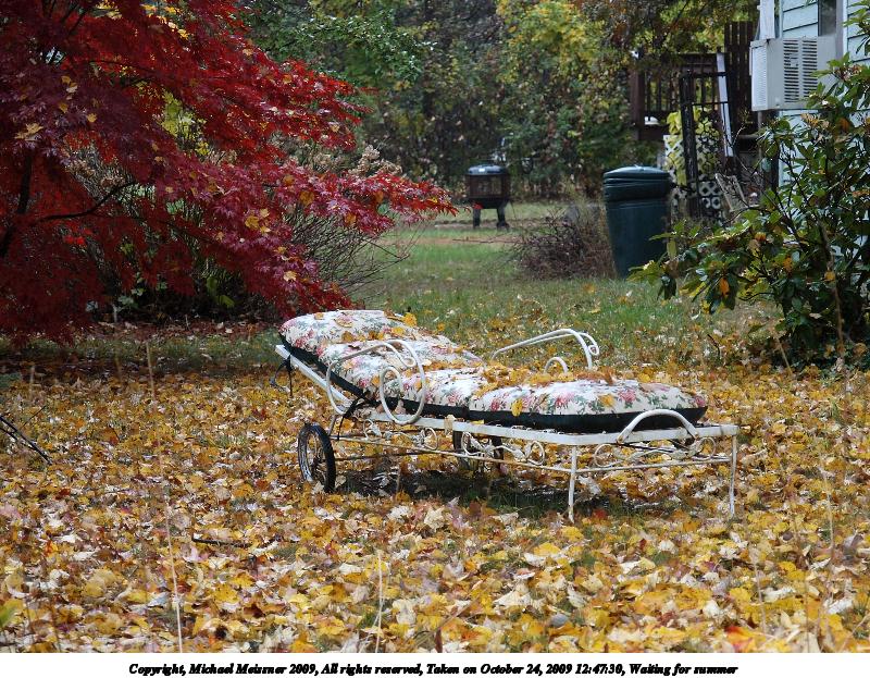Picture #99: Waiting for summer 800x623, 181,530 bytes (178K), (html file) Copyright, Michael Meissner 2009, All rights reserved Olympus E-3 camera with Olympus 14-54mm f/2.8-3.5 lens f/3.5, ISO 500, 1/100 sec, 54.0mm, auto mode, natural color, matrix metering, IS1 (All Direction Shake IS) 35mm equivalent focal length 108.0mm Programs used: gimp Taken by Michael Meissner on October 24, 2009 12:47:30 Last modified on October 28, 2009 at 09:37 |