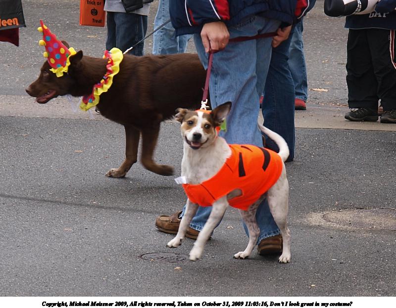 Picture #6: Don't I look great in my costume? 800x623, 111,933 bytes (110K), (html file) Copyright, Michael Meissner 2009, All rights reserved Olympus E-3 camera with Olympus 14-54mm f/2.8-3.5 lens f/4.0, ISO 100, 1/125 sec, 52.0mm, auto mode, natural color, matrix metering, IS1 (All Direction Shake IS) 35mm equivalent focal length 104.0mm Programs used: gimp Taken by Michael Meissner on October 31, 2009 11:03:16 Last modified on November 01, 2009 at 23:14 |