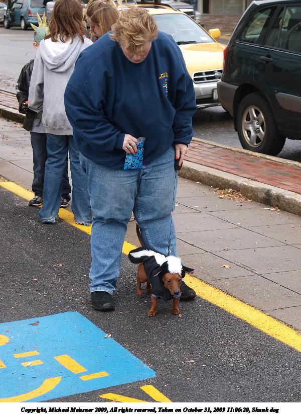 Picture #10: Skunk dog 600x823, 132,614 bytes (130K), (html file) Copyright, Michael Meissner 2009, All rights reserved Olympus E-3 camera with Olympus 14-54mm f/2.8-3.5 lens f/4.5, ISO 100, 1/125 sec, 37.0mm, auto mode, natural color, matrix metering, IS1 (All Direction Shake IS) 35mm equivalent focal length 74.0mm Programs used: gimp Taken by Michael Meissner on October 31, 2009 11:06:20 Last modified on November 01, 2009 at 23:23 |
