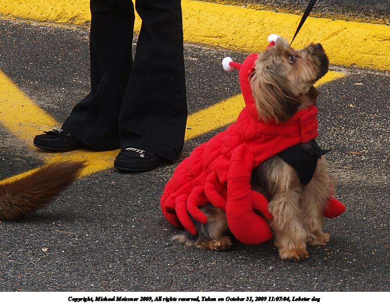 Picture #13: Lobster dog 800x623, 127,520 bytes (125K), (html file) Copyright, Michael Meissner 2009, All rights reserved Olympus E-3 camera with Olympus 14-54mm f/2.8-3.5 lens f/4.0, ISO 100, 1/160 sec, 54.0mm, auto mode, natural color, matrix metering, IS1 (All Direction Shake IS) 35mm equivalent focal length 108.0mm Programs used: gimp Taken by Michael Meissner on October 31, 2009 11:07:04 Last modified on November 01, 2009 at 23:26 |