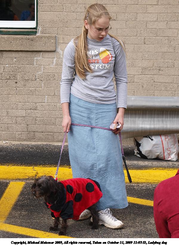 Picture #14: Ladybug dog 600x823, 139,424 bytes (137K), (html file) Copyright, Michael Meissner 2009, All rights reserved Olympus E-3 camera with Olympus 14-54mm f/2.8-3.5 lens f/4.5, ISO 100, 1/200 sec, 35.0mm, shutter priority, natural color, matrix metering, IS1 (All Direction Shake IS) 35mm equivalent focal length 70.0mm Programs used: gimp Taken by Michael Meissner on October 31, 2009 11:07:53 Last modified on November 01, 2009 at 23:28 |
