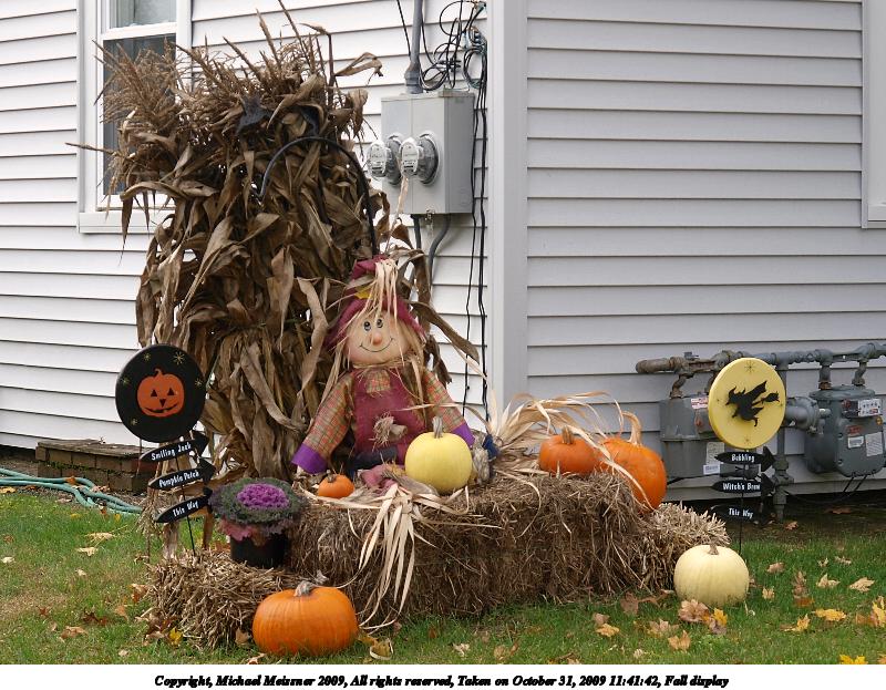 Picture #108: Fall display #3 600x823, 99,930 bytes (98K), (html file) Copyright, Michael Meissner 2009, All rights reserved Olympus E-3 camera with Olympus 14-54mm f/2.8-3.5 lens f/5.0, ISO 100, 1/250 sec, 54.0mm, auto mode, natural color, matrix metering, IS1 (All Direction Shake IS) 35mm equivalent focal length 108.0mm Programs used: gimp Taken by Michael Meissner on October 31, 2009 11:56:49 Last modified on November 08, 2009 at 19:16 |
