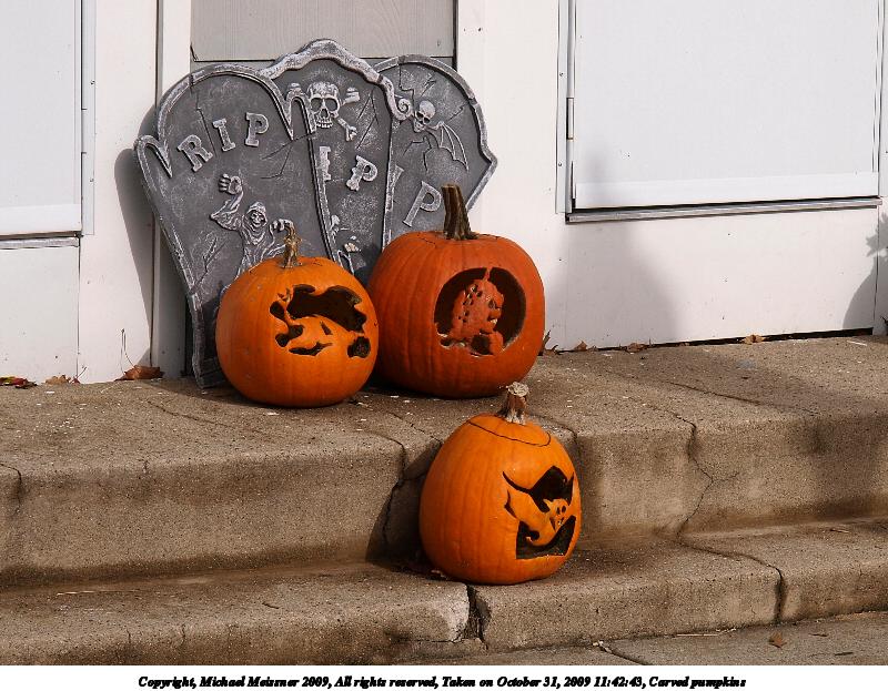 Picture #23: Carved pumpkins 800x623, 116,714 bytes (114K), (html file) Copyright, Michael Meissner 2009, All rights reserved Olympus E-3 camera with Olympus 14-54mm f/2.8-3.5 lens f/8.0, ISO 100, 1/640 sec, 54.0mm, auto mode, natural color, matrix metering, IS1 (All Direction Shake IS) 35mm equivalent focal length 108.0mm Programs used: gimp Taken by Michael Meissner on October 31, 2009 11:42:43 Last modified on November 08, 2009 at 18:57 |