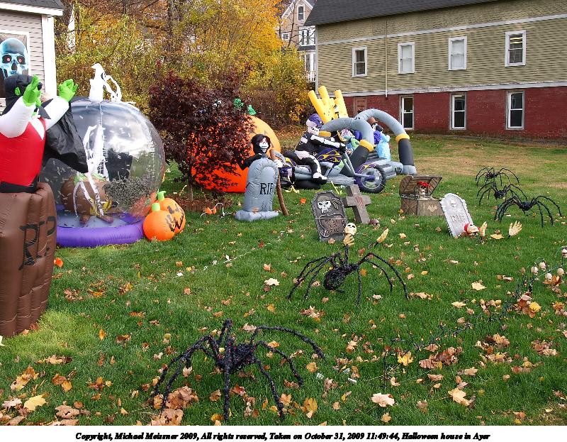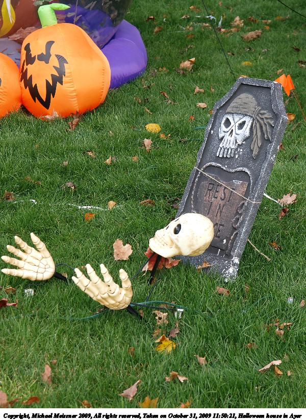 Picture #25: Halloween house in Ayer #2 800x623, 214,514 bytes (210K), (html file) Copyright, Michael Meissner 2009, All rights reserved Olympus E-3 camera with Olympus 14-54mm f/2.8-3.5 lens f/5.6, ISO 100, 1/320 sec, 17.0mm, auto mode, natural color, matrix metering, IS1 (All Direction Shake IS) 35mm equivalent focal length 34.0mm Programs used: gimp Taken by Michael Meissner on October 31, 2009 11:49:16 Last modified on November 08, 2009 at 19:02 |