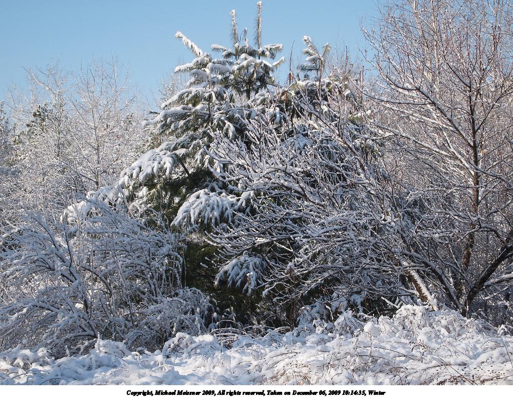Picture #5: Pine trees in the snow 675x923, 203,796 bytes (200K), (html file) Copyright, Michael Meissner 2009, All rights reserved Olympus E-P2 camera with Olympus-m43 14-42mm f/3.5-5.6 lens f/9.0, ISO 200, 1/250 sec, 42.0mm, auto mode, natural color, matrix metering, IS1 (All Direction Shake IS), noise reduction auto 35mm equivalent focal length 84.0mm Programs used: gimp Taken by Michael Meissner on December 06, 2009 10:16:35 Last modified on December 06, 2009 at 17:34 |