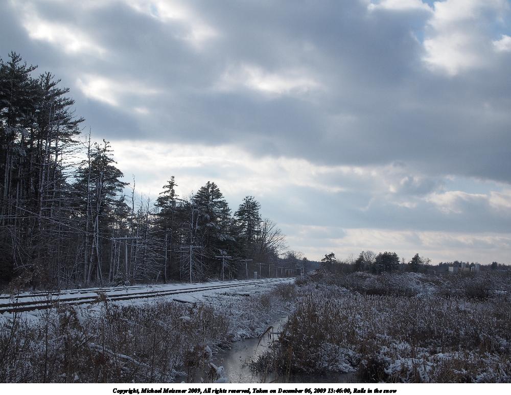 Picture #8: Rails in the snow #2 675x923, 213,244 bytes (209K), (html file) Copyright, Michael Meissner 2009, All rights reserved Olympus E-P2 camera with Olympus-m43 14-42mm f/3.5-5.6 lens f/8.0, ISO 200, 1/250 sec, 25.0mm, auto mode, natural color, fine weather (5300K), matrix metering, IS1 (All Direction Shake IS), noise reduction auto 35mm equivalent focal length 50.0mm Programs used: gimp Taken by Michael Meissner on December 06, 2009 13:46:55 Last modified on December 06, 2009 at 17:48 |