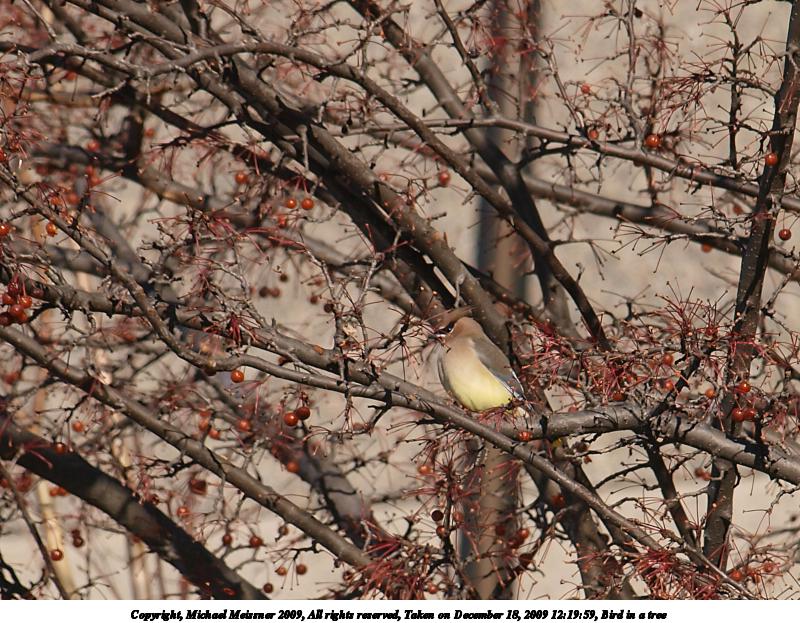 Picture #4: Bird in a tree #2 800x623, 140,754 bytes (138K), (html file) Copyright, Michael Meissner 2009, All rights reserved Olympus E-3 camera with Olympus 40-150mm f/4.0-5.6 lens f/6.3, ISO 100, 1/400 sec, 150.0mm, auto mode, natural color, matrix metering, IS1 (All Direction Shake IS) 35mm equivalent focal length 301.0mm Programs used: gimp Taken by Michael Meissner on December 18, 2009 12:20:00 Last modified on December 18, 2009 at 22:20 |