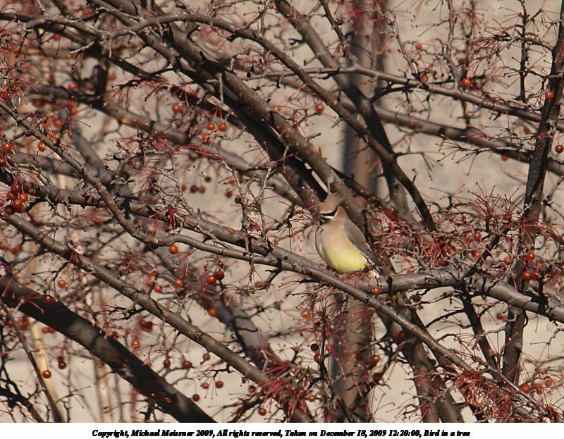 Picture #3: Bird in a tree 800x623, 140,544 bytes (138K), (html file) Copyright, Michael Meissner 2009, All rights reserved Olympus E-3 camera with Olympus 40-150mm f/4.0-5.6 lens f/6.3, ISO 100, 1/400 sec, 150.0mm, auto mode, natural color, matrix metering, IS1 (All Direction Shake IS) 35mm equivalent focal length 301.0mm Programs used: gimp Taken by Michael Meissner on December 18, 2009 12:19:59 Last modified on December 18, 2009 at 22:19 |