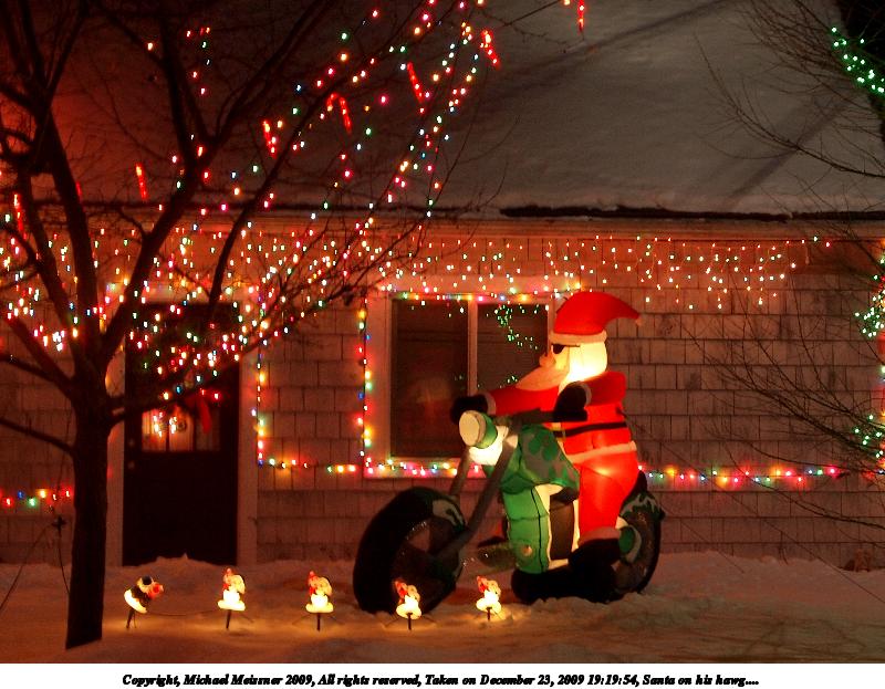 Picture #4: Santa on his hawg.... 800x623, 106,602 bytes (105K), (html file) Copyright, Michael Meissner 2009, All rights reserved Olympus E-P2 camera with Olympus-m43 14-42mm f/3.5-5.6 lens f/5.1, ISO 200, 1 sec, 34.0mm, auto mode, natural color, matrix metering, manual focus, IS1 (All Direction Shake IS), noise reduction auto 35mm equivalent focal length 68.0mm Extra equipment used: tripod, FL-36 flash, slow-sync2 Programs used: gimp Taken by Michael Meissner on December 23, 2009 19:19:54 Last modified on December 24, 2009 at 01:27 |